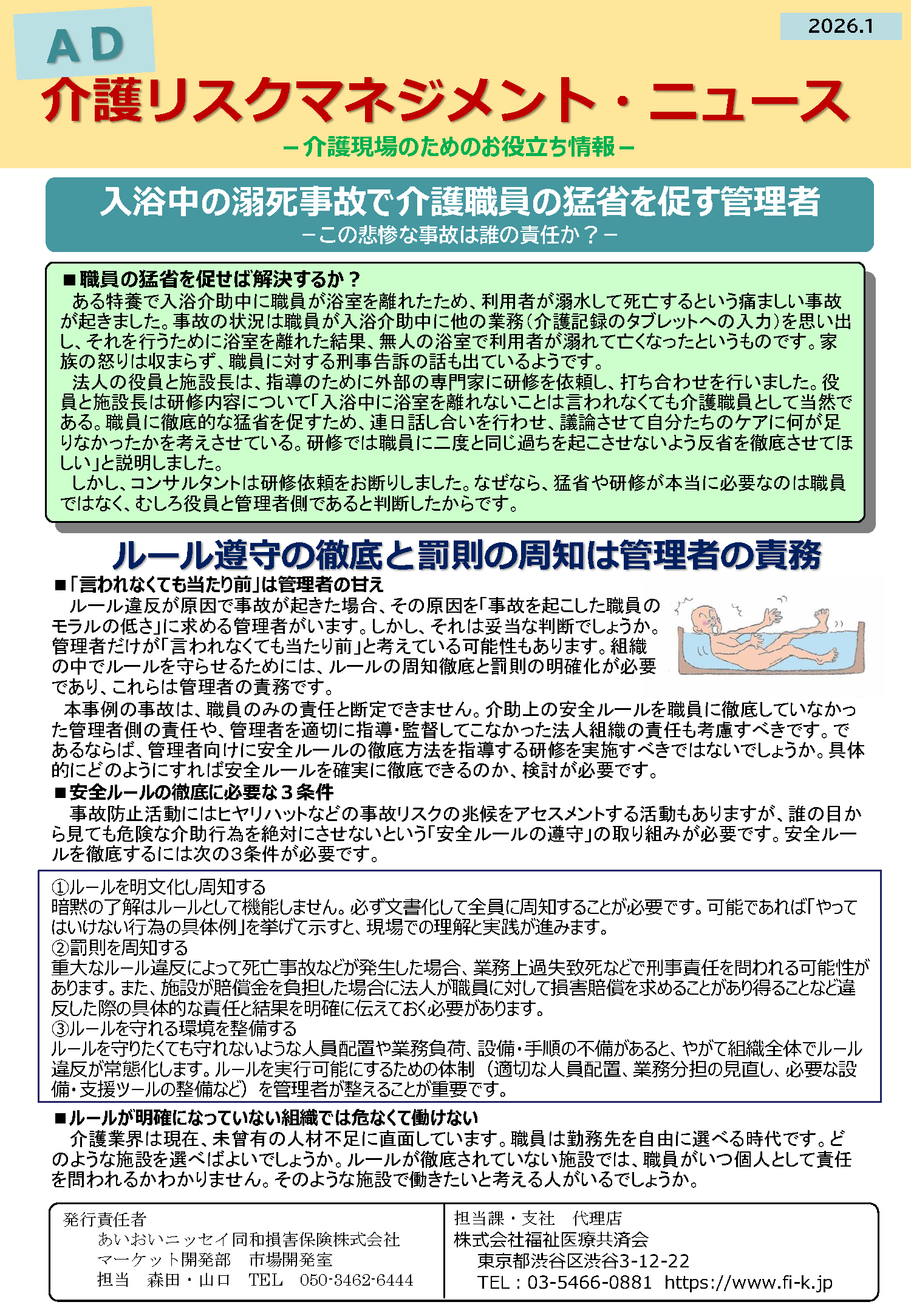 入浴中の溺死事故で介護職員の猛省を促す管理者