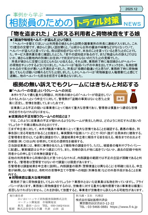 「物を盗まれた」と訴える利用者と荷物検査をする娘